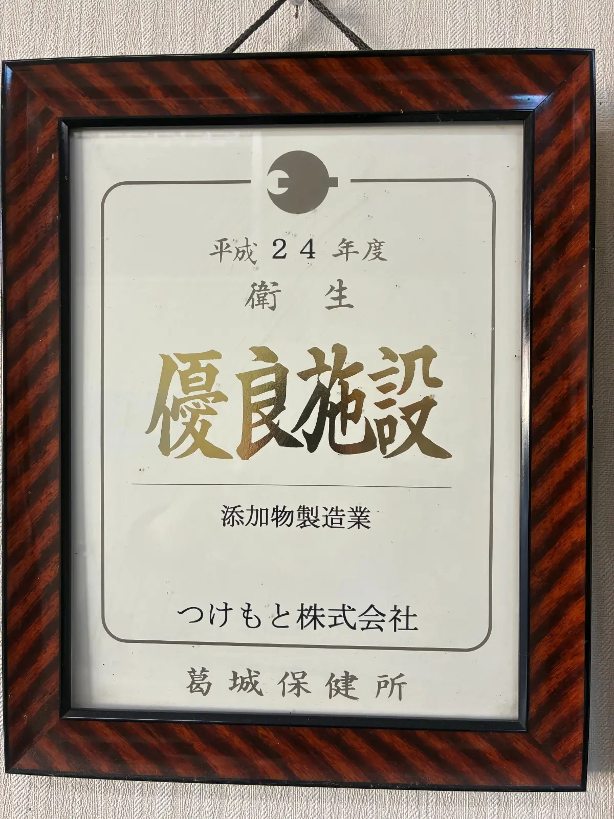 添加物製造業として、衛生管理の取り組みが評価されました(葛城保健所)。