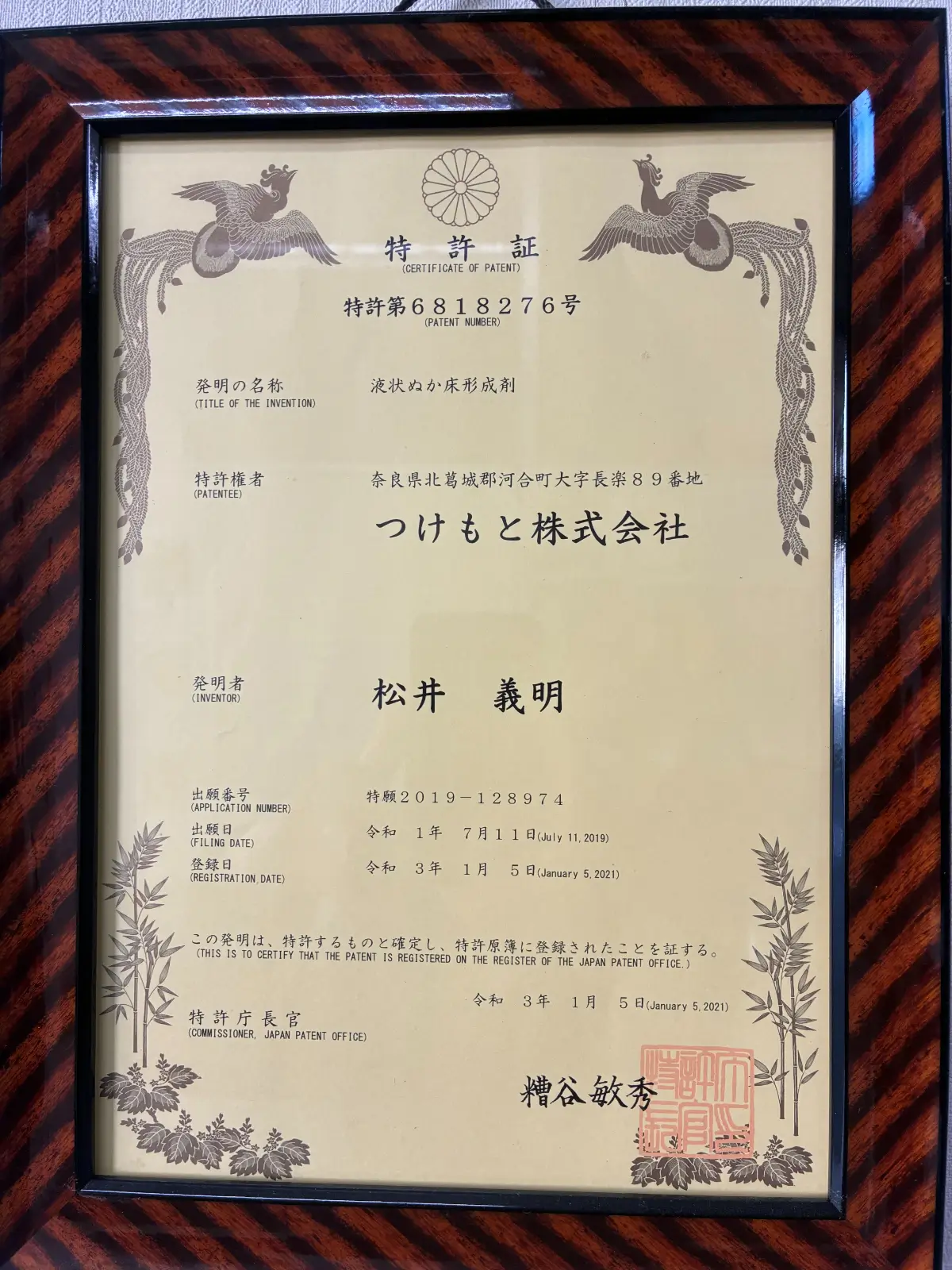 「液状ぬか床形成剤」/発明者:松井義明(登録日:2021年1月5日)。