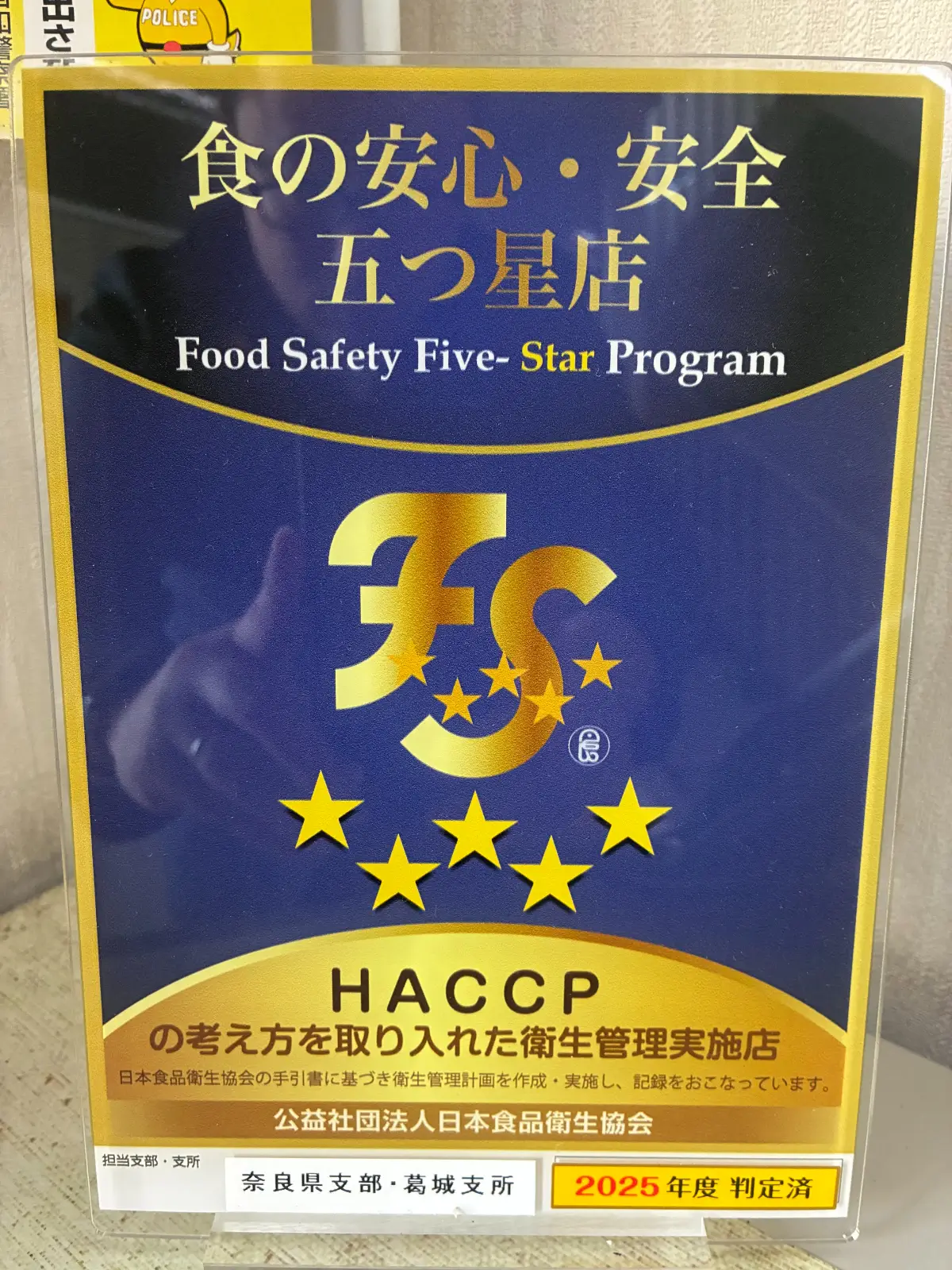 HACCPの考え方を取り入れた衛生管理実施店として判定(2025年度)。
